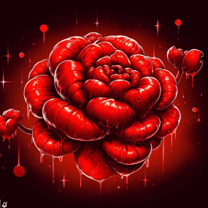 La fleur grasse et obscène du redoutable lierre rouge de Zukundu, se nourrissant de la vie qu'elle extrait des vivants via ses racines. Ergen l'a récupérée après avoir mis le feu à un redoutable spécimen vivant dans une serre. De cette fleur on tire un jus dont l'injection fait oublier la douleur et provoque une rage guerrière comparable à celle des combattants du nord. Plus d'un an après sa récolte, elle paraît avoir été cueillie à l'instant. Il serait dommage de l'égarer quelquepart.