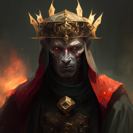 - Il a trouvé un endroit où se réfugier avec ses compagnons, l’antique Akharon. Dans les ruines, au milieu des épées brisées, des boucliers vermoulus et des armures défaites il a vu une couronne en fer noir, qui l’a appelé. Il l’a ceinte, et l’esprit d’Anamelech l’a envahi.